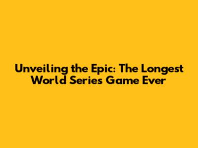 Unveiling The Epic: The Longest World Series Game Ever