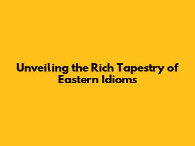 Unveiling The Rich Tapestry Of Eastern Idioms