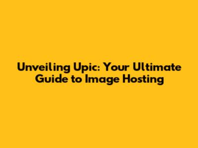 Unveiling Upic: Your Ultimate Guide To Image Hosting