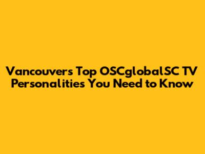 Vancouver's Top OSCglobalSC TV Personalities You Need To Know