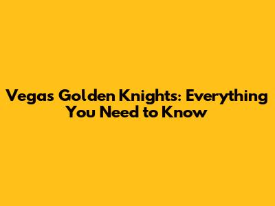 Vegas Golden Knights: Everything You Need To Know
