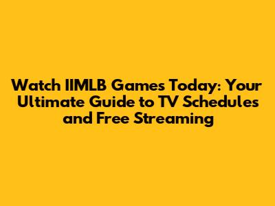 Watch IIMLB Games Today: TV Schedule & Free Streaming