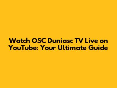 Watch OSC Duniasc TV Live On YouTube: Your Ultimate Guide