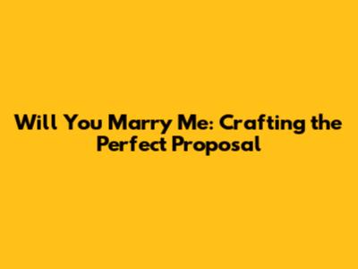 Will You Marry Me: Crafting the Perfect Proposal