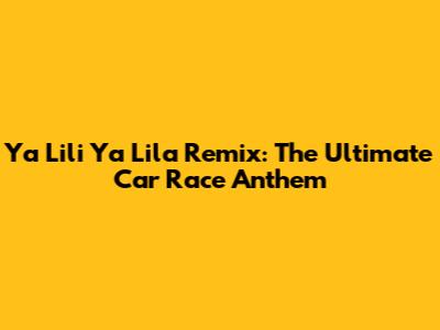 Ya Lili Ya Lila Remix: The Ultimate Car Race Anthem