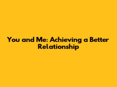 You And Me: Achieving A Better Relationship